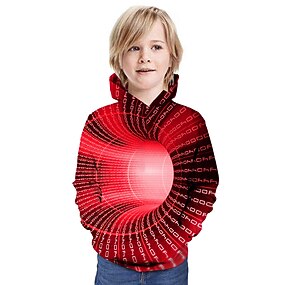 Sudadera con capucha para niños de manga larga con estampado 3D y ilusión óptica en color rojo, ideal para otoño e invierno, ideal para uso diario, para interior y exterior, de 4 a 12 años.