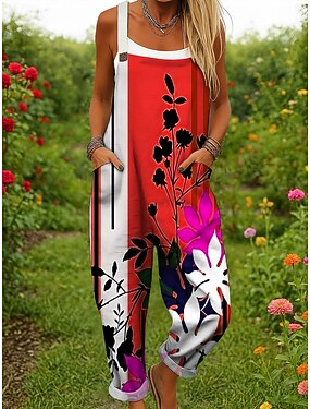 Mujer Mono Activo Floral Sin Mangas Pantalones Harén Correa con bolsillo Vacaciones Calle Holgado Amarillo Rojo Azul Piscina Verano