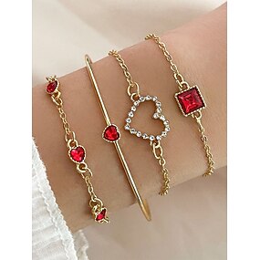 Conjunto de pulseras en capas con dijes de corazón para mujer, brazaletes de cadena de diamantes de imitación de aleación multicolor, elegantes joyas románticas para mujer, perfectas para el día de San Valentín, ropa informal, citas y atuendos cotidianos.