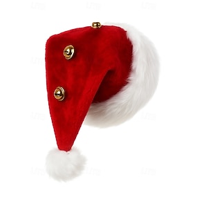 Gorro navideño unisex de Papá Noel: de poliéster con cascabeles y ribete de piel sintética, perfecto para fiestas navideñas y celebraciones festivas.