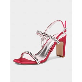 Zapatos de tacón cuadrado de satén morado para mujer con tiras de diamantes de imitación: elegantes zapatos formales para eventos nocturnos y fiestas.