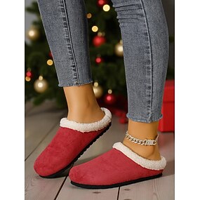 Pantuflas de mujer con forro polar, cálidas y cómodas, ideales para estar en casa en Navidad. Su suela antideslizante proporciona confort y relajación durante las fiestas.