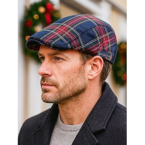 Gorra plana de tartán de algodón para hombre, ideal para Navidad. Disponible en varios colores, elegante y cómoda, perfecta para los conjuntos navideños.