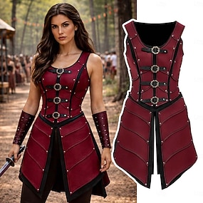 Medieval Renacimiento Vestidos Armas y Armaduras Chaleco Guerrero Doncella escudo Bárbaro Disfraz Mujer Vikingo Fantasía Víspera de Todos los Santos Carnaval Rendimiento LARP Feria Ren Adulto Vestido