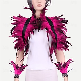 Carnaval 2026 Accesorios de Samba de Carnaval de Río - Capa de plumas naturales góticas chal de hombro con encaje para disfraces de Halloween para mujeres - Traje de actuación para el festival de