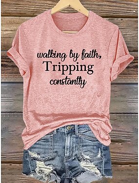 Camiseta de mujer con estampado patchwork, letras divertidas, jerga, elegante, básica, clásica, manga corta, cuello redondo, tops regulares, diario, azul, gris, negro, blanco, rosa, verano, primavera
