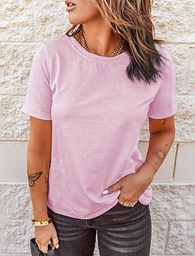 Camiseta de algodón 100% para mujer color sólido plain vintage básica clásica de manga corta cuello redondo tops regulares casual diaria fin de semana negro blanco rosa rojo azul marino verano