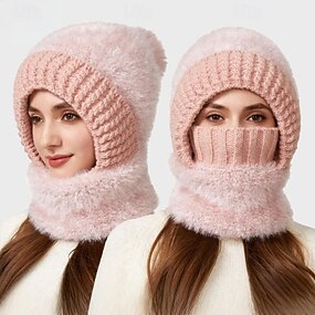 Gorro de invierno 3 en 1 para mujer, tejido con polaina para el cuello y mascarilla, de alta elasticidad, color sólido, resistente al viento, cálido, para ciclismo en climas fríos.