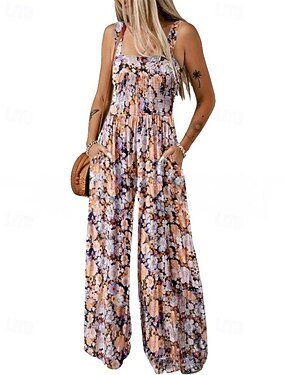 Mujer Normal Mono Ropa de calle Floral Sin Mangas Escote en U Bolsillo Estampado Calle Noche Ajuste regular Rosa Verano