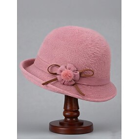 Sombrero de fieltro de lana para mujer con decoración de flores de pompón de felpa, disponible en varios colores, perfecto para invierno y ropa informal.