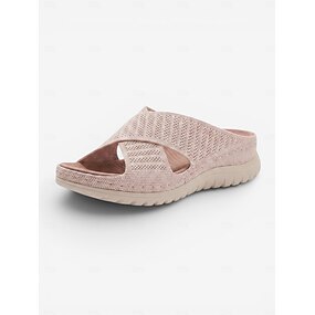 Sandalias planas rosas para mujer con tiras cruzadas y soporte para el arco del pie: sandalias cómodas de punto ligero y transpirable, suela suave y acolchada, calzado casual de verano para casa,