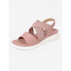 Sandalias rosas de mujer con soporte para el arco del pie, cómodas y cómodas: diseño con tiras elásticas cruzadas, sandalias deportivas ligeras para caminar en verano y viajar. &uso diario