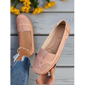 Mocasines sin cordones para mujer con detalles cortados a láser: mocasines planos informales para caminar y conducir a diario.