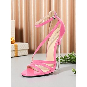 Sandalias de tiras de PU de charol rojo para mujer: tacones altos de aguja con correa en el tobillo para looks de vida nocturna, discotecas y fiestas.