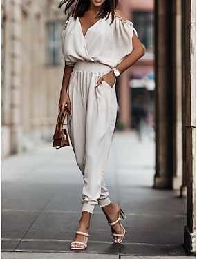 Mujer Normal Mono Desnatados Color sólido Manga Corta Camiseta Perneras anchas Escote en Pico Acordonado Diario Ajuste regular Negro Blanco Verde Ejército Verano