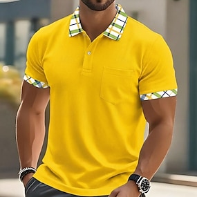 Hombre Camiseta de golf Camisetas polo piqué Casual Negocio Clásico Manga Corta Moda Básico Color sólido Plaid Botones Verano Primavera Primavera & Otoño Ajuste regular Blanco Amarillo Azul Marino