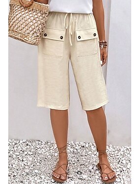 Mujer Pantalones Capri Lino de algodón sintético pantalones Pantalones cortos de verano Casual Longitud de la rodilla Cintura Media Plano Bolsillo Diseño de cordón elástico Confortable Al Aire Libre