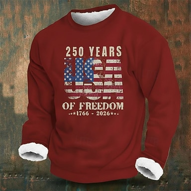 Hombre Graphic Bandera estadounidense de los Estados Unidos Vellón Sudadera Ropa de calle Diario Elegante Clásico Casual Cuello Barco Exterior Vacaciones Noche Negro Rojo Azul Marino Marrón Estampado