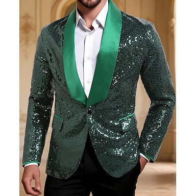 Hombre chaqueta Fiesta de Boda Fiesta y Noche Bolsillo Todas las Temporadas Lentejuelas Reluciente Boda Botonadura Simple Chaqueta de sport Plata Negro Azul Real Dorado