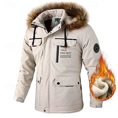 Hombre Chaqueta de Invierno Chaqueta de lana Chaqueta con capucha Chaqueta para senderismo Deporte Acampada y Senderismo Impermeable Cortavientos Detalles en Piel Capucha desmontable Otoño Invierno