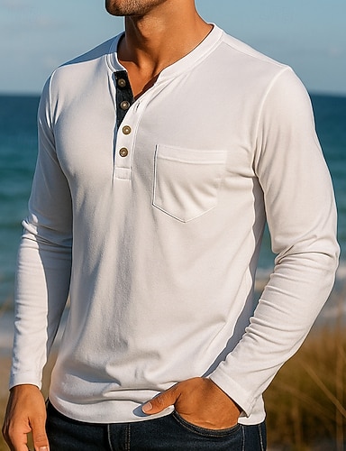 Hombre Camisa casual cima de senderismo Camiseta henley Manga Larga Camiseta Al aire libre Transpirable Primavera Otoño Algodón Negro Blanco Verde Ejército Tenis Golf Corriendo