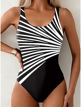 Mujer Bañadores Una pieza Slips Traje de baño Elegante Ropa de playa Graphic A Rayas Escote en U Sin Mangas Trajes de baño