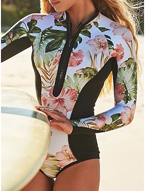 Mujer Camiseta Protección Solar Surf Traje de baño Bañador deportivo Floral Tropical Cerrar Acolchado extraíble Cremallera delantera Protección solar UV UPF50+ Utra ligero (UL) Manga Larga Bañadores
