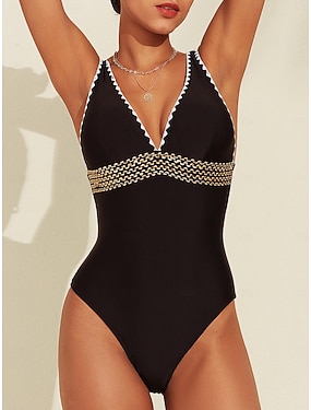 Bañador de una pieza para mujer monocromo adelgazante sin espalda control de abdomen alta cintura ideal para vacaciones en la playa escote en U y diseño geométrico sin mangas