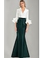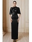 Corte Trompeta Sirena Hasta el Suelo Trajes de gala Vestidos de noche Corte Cenicienta Vestimenta formal Elegante Lentejuelas Manga Larga Cuello Barco Boda Formal Satén elástico con Detalles con