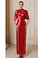 Funda Columna Hasta el Suelo Trajes de gala Vestidos de noche Corte Cenicienta Vestimenta formal Elegante Sedoso Sin Mangas Un Hombro Boda Formal Capas Satén elástico con Chal