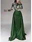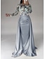 Corte Trompeta Sirena Hasta el Suelo Vestidos de noche Vestido de baile con sobrefalda Vestimenta formal Elegante Reluciente Estilo de Celebridad Manga Larga Cuello Alto Fiesta de jardin Boda Satén
