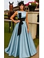 Corte A Hasta el Suelo Vestidos de noche Corte Cenicienta Vestimenta formal Elegante Sedoso Manga 3/4 Escote en Pico Boda Formal Bolsillo Satén elástico con Lazo(s)