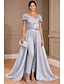 Corte A Hasta el Suelo Mono Vestidos de noche Corte Cenicienta Vestido de baile con sobrefalda Vestimenta formal Elegante Sedoso Manga Corta Un Hombro Boda Formal Satén elástico Espalda desnuda con