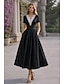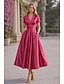 Corte A Vestido Midi Vestidos de coctel Vestidos de fiesta Elegante Manga 3/4 Escote en Pico Fiesta de jardin Boda Satén elástico con Lazo(s)