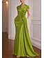 Corte A Hasta el Suelo Vestidos de noche Corte Cenicienta Vestimenta formal Elegante Reluciente Sedoso Sin Mangas Un Hombro Boda Formal Bolsillo Satén elástico con Lazo(s) Fruncido