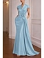 Corte Trompeta Sirena Hasta el Suelo Trajes de gala Vestidos de noche Corte Cenicienta Vestimenta formal Elegante Reluciente Estilo de Celebridad Manga Larga Un Hombro Fiesta de jardin Boda Satén