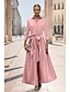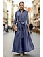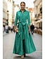 Corte A Hasta el Suelo Vestido Invitada Boda Vestido formal Vestido de noche Trajes de gala Elegante Manga 3/4 Cuello Camisero Fiesta de baile Formal Satén elástico con Lazo(s)