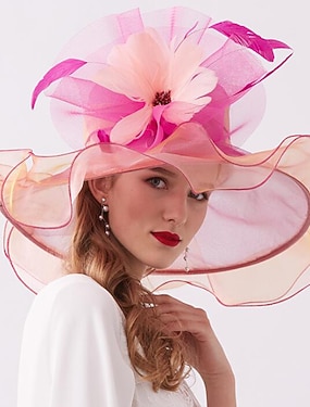 Sombreros Sombrero de Sol Organza Boda Vacaciones Fiesta de Té Carrera de Caballos Cóctel Elegante Vintage Bonito Con Tocado Floral Accesorio