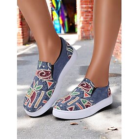 Zapatillas de lona con estampado tribal sin cordones para mujer: zapatos casuales de estilo urbano cómodos para caminar, ir de compras y celebrar festivales.
