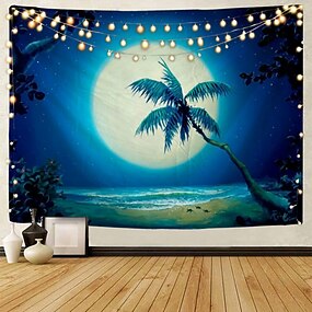 Luna mar cielo pared tapiz arte decoración manta cortina picnic mantel colgante hogar dormitorio sala dormitorio decoración paisaje noche completa océano nube estrella