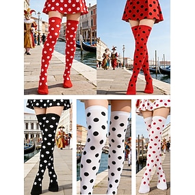 Paquete de 5 calcetines de lunares hasta la rodilla de Mardi Gras para Mujeres medias de disfraz coloridas de carnaval medias retro elásticas para festivales y celebraciones de máscaras