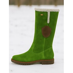Mujer Botas Botas de nieve Tallas Grandes Botas de invierno Exterior Trabajo Diario Color sólido Forrado con Lana Botines Botines Tacón Plano Dedo redondo Vintage Felpa Casual Zapatos de Paseo Ante