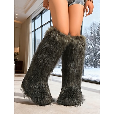 Botas de nieve cálidas de invierno para mujer con forro de piel sintética y cremallera lateral, botines antideslizantes impermeables para uso al aire libre.