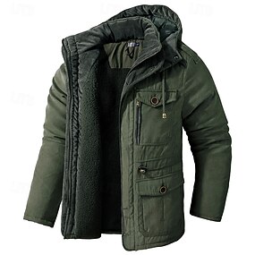 Hombre Chaqueta de Invierno Chaqueta de lana Chaqueta tipo cargo Chaqueta casual Vacaciones Diario Mantiene abrigado Bolsillo Vellón Otoño Invierno Plano Moda Ropa de calle Diseño Regular Caqui Verde