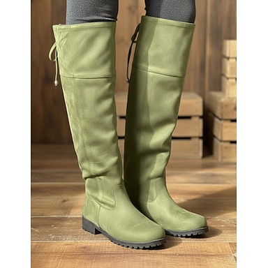 Botas de ante con cordones y tacón plano para mujer por encima de la rodilla: elegantes y cómodas para uso informal y en invierno