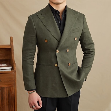 Hombre Blazer 100% lino Formal Boda Navidad Elegante Vintage Verano Primavera 100% Lino Color sólido Bolsillo Puro Botonadura Doble Chaqueta de sport Negro Blanco Naranja Verde Ejército