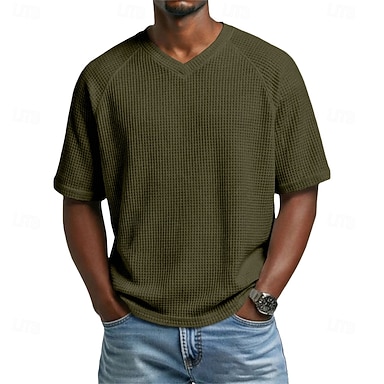 Hombre Camiseta con diseño de gofre Camiseta Camisa manga corta Camiseta superior Manga Corta Escote en Pico Verano Primavera Color sólido Vintage Ropa de calle Elegante Mangas raglanes Diario