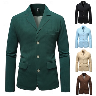 Blazer para hombre, chaqueta con cuello de muesca, estilo clásico, informal, a cuadros, de color liso, con diseño de gofre, negro, azul cielo y marrón, corte entallado, botonadura sencilla, tres