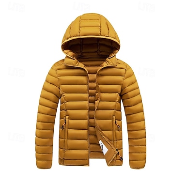 Hombre Abrigo de invierno Chaqueta acolchada Bolsillo Poliéster Vacaciones Ropa Cotidiana Cita Regular Moda Casual Cómodo Mantiene abrigado Invierno Color sólido/liso Negro Blanco Amarillo Rojo