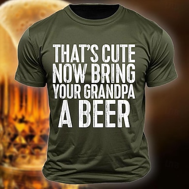 Camiseta divertida de abuelo de hombre con cerveza - "Eso es lindo ahora trae una cerveza a tu abuelo" camiseta gráfica de humor familiar de manga corta